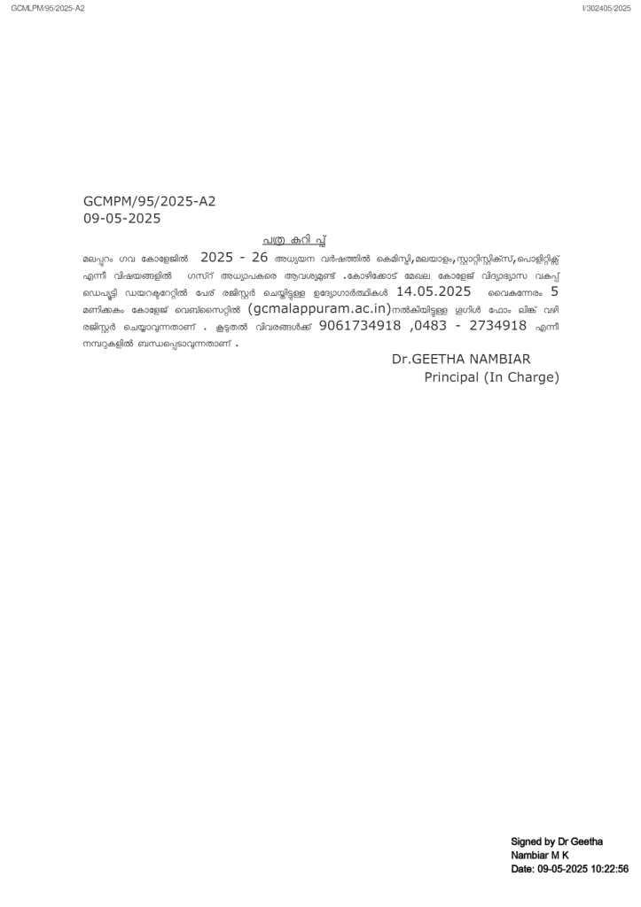 Applications are invited for Guest Lecturer post for 2025-26. Eligible candidates are requested to apply through the following link latest by 14-05-2025, 5PM. And for more details, please see the following notification.